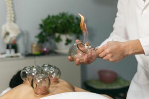 Eine Schröpfmassage wirkt bei Muskelverspannungen oder Schmerzen im Schulter- und Nackenbereich.